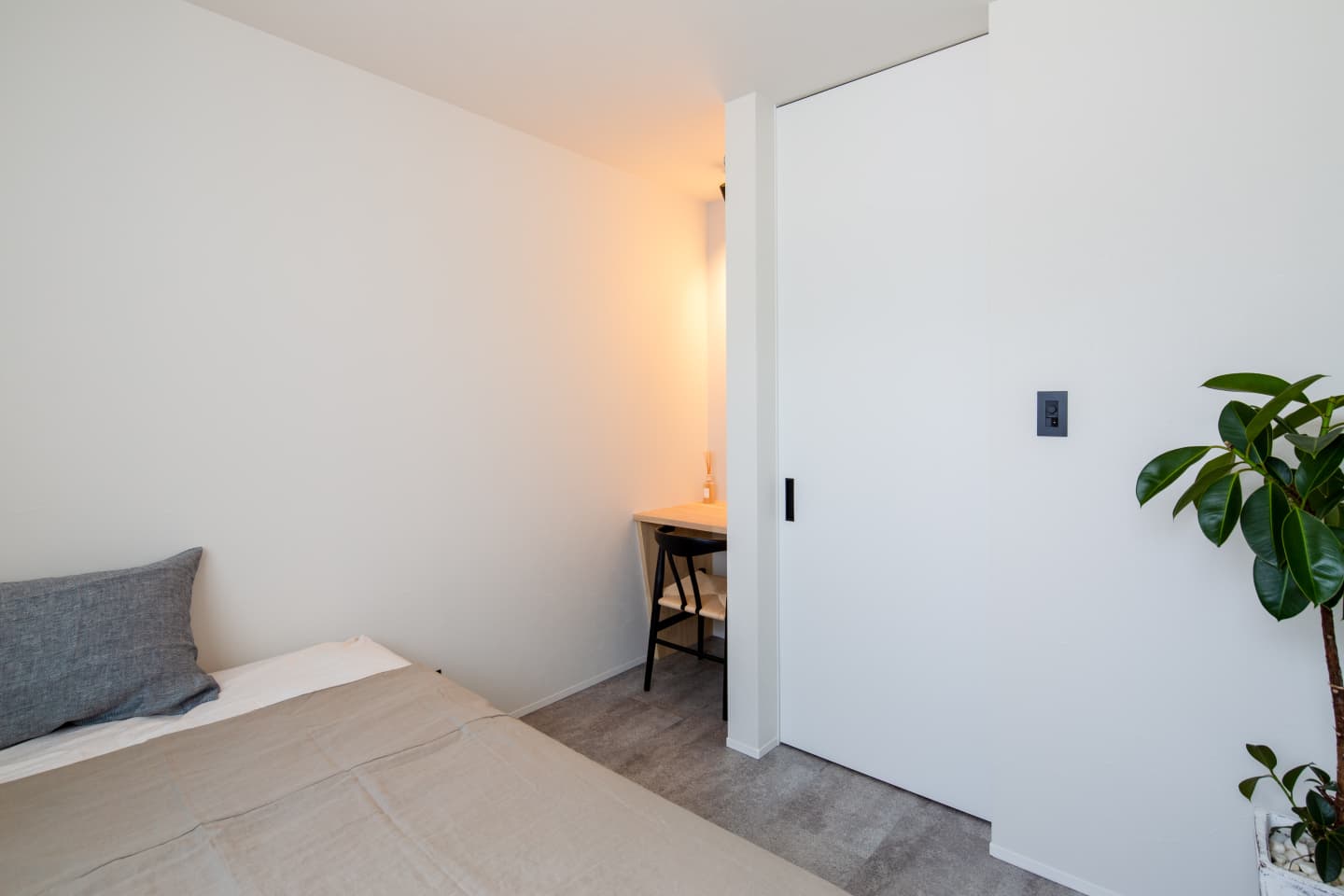 ホテルライクな寝室は非日常感を感じさせ、特別な気分で毎日の睡眠を